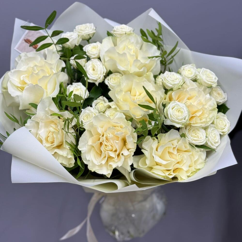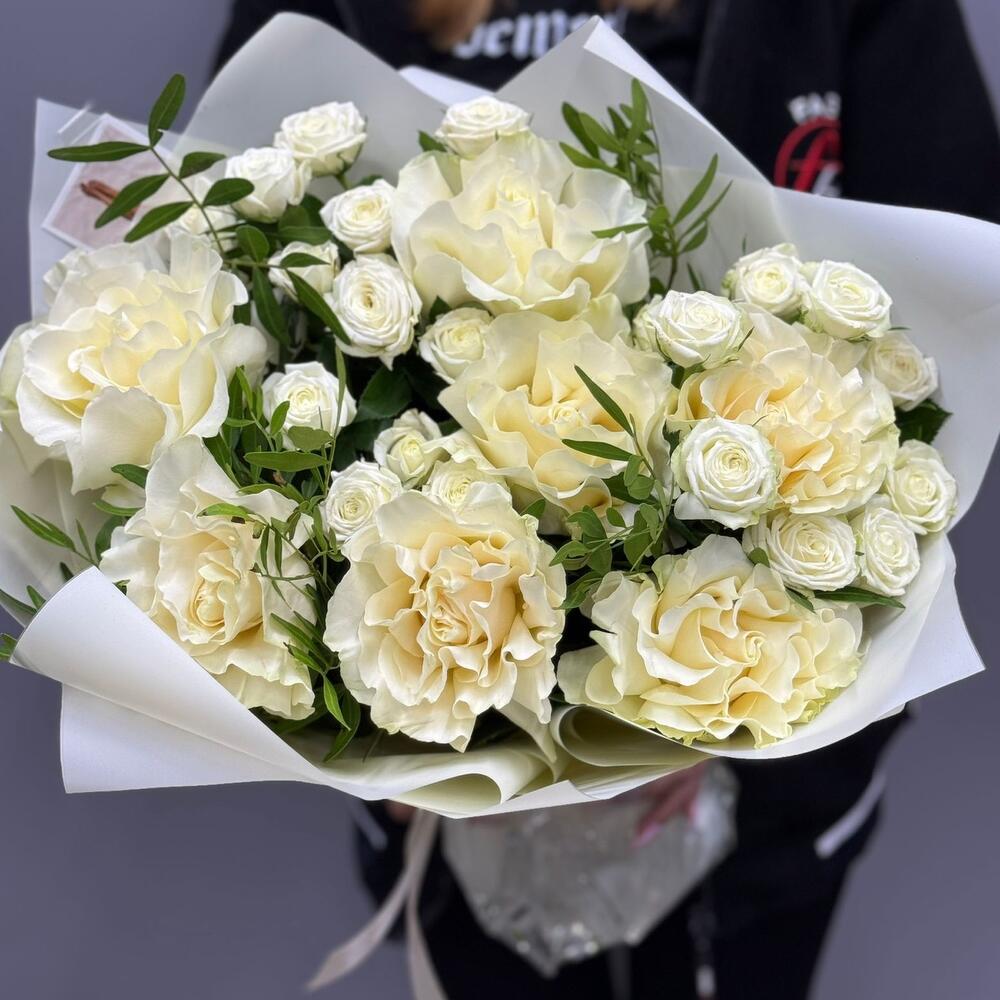 Белые розы и кустовые розы милки вей в Кингисеппе